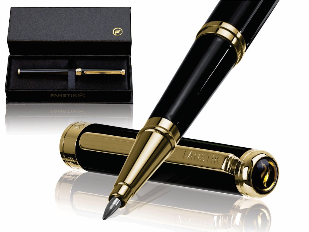 FANSTIK Customized Black & Gold Luxury Rollerball pen, Real 24K Gold Plating Professional executive pen gift set for men(Lux C-Roller B-G)